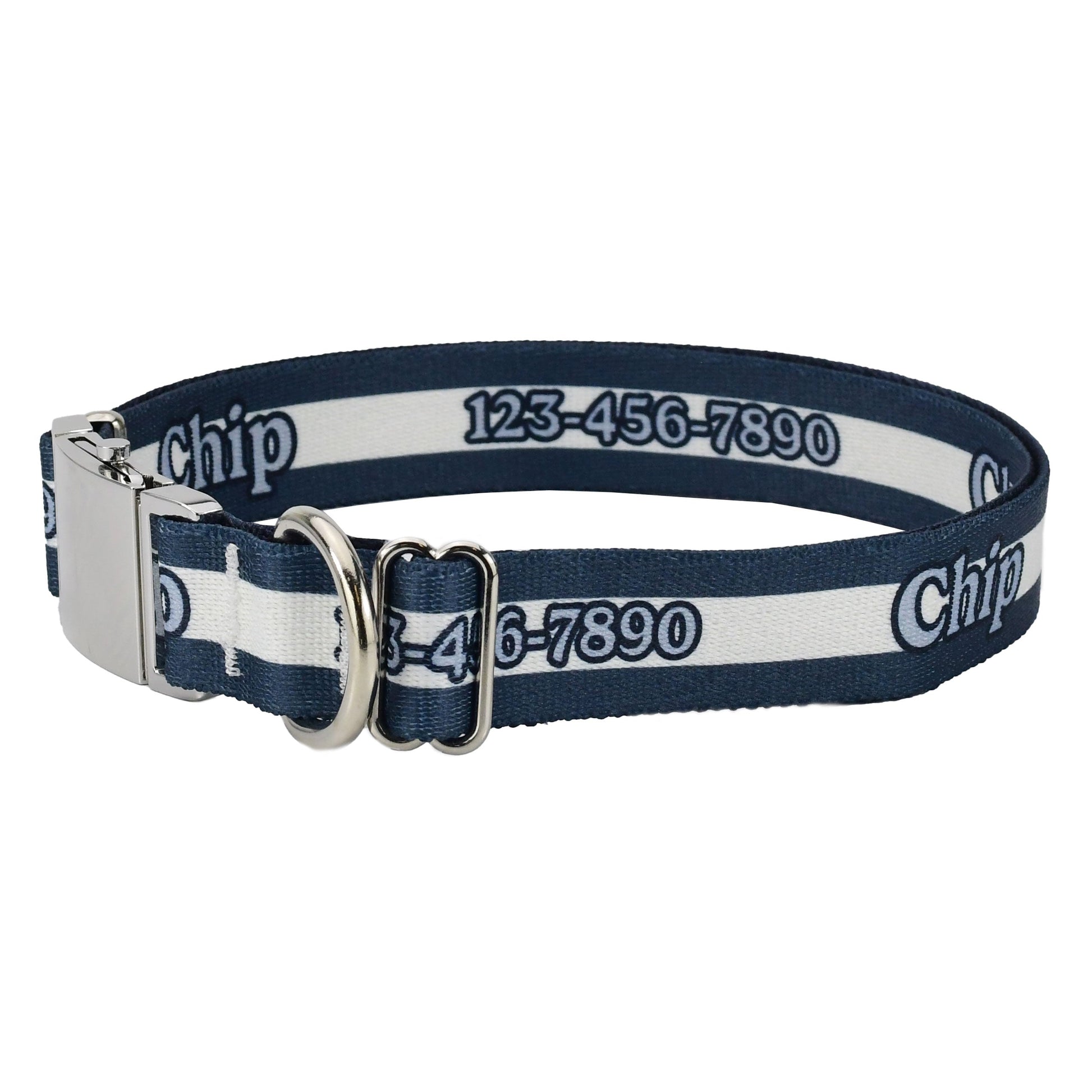 Personalized Navy Blue Mighty Stripes Dog Collar