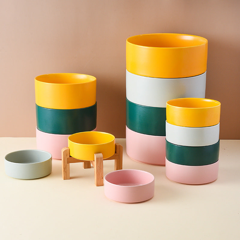 Pet Anti Rollover Ceramic With High Bamboo And Wood Frame