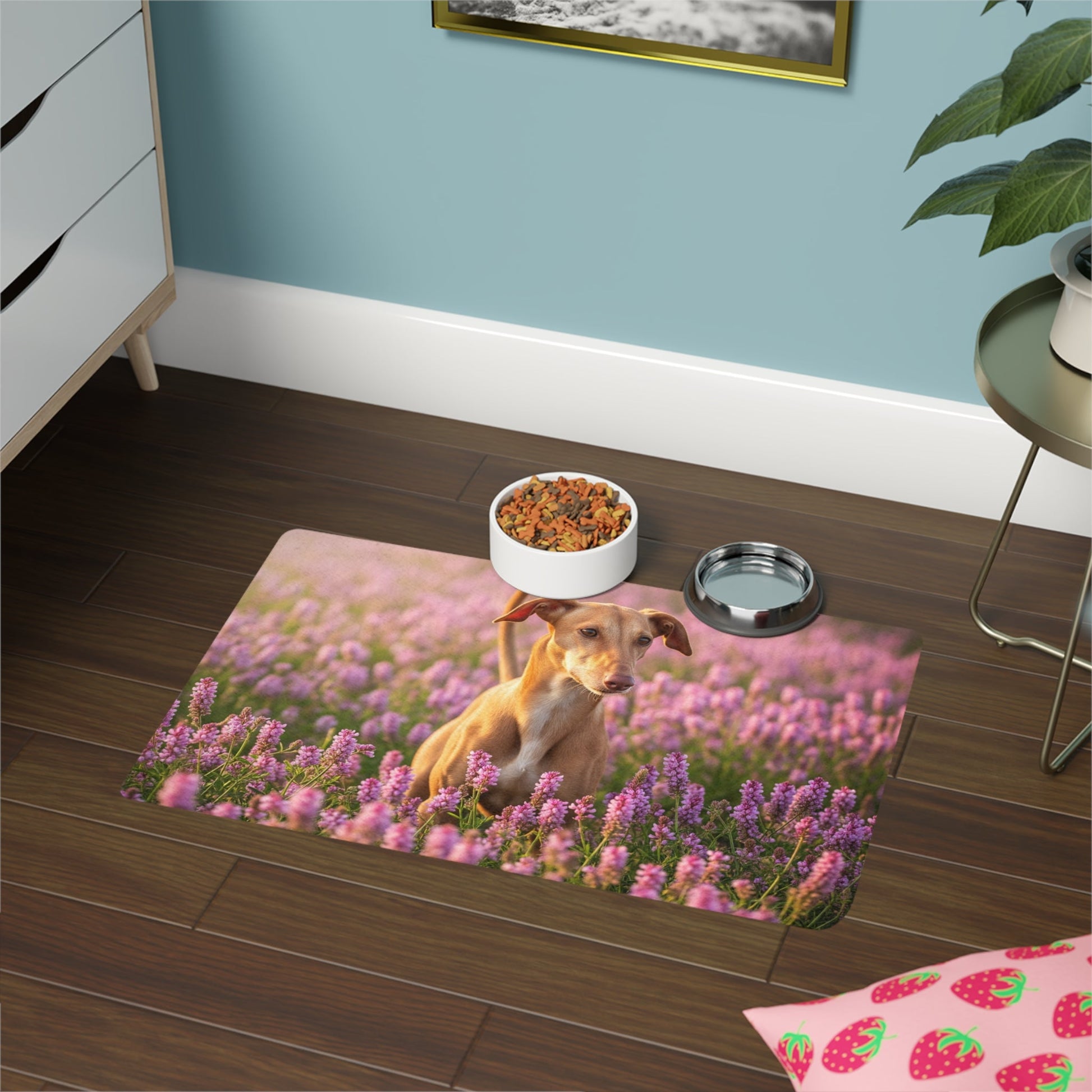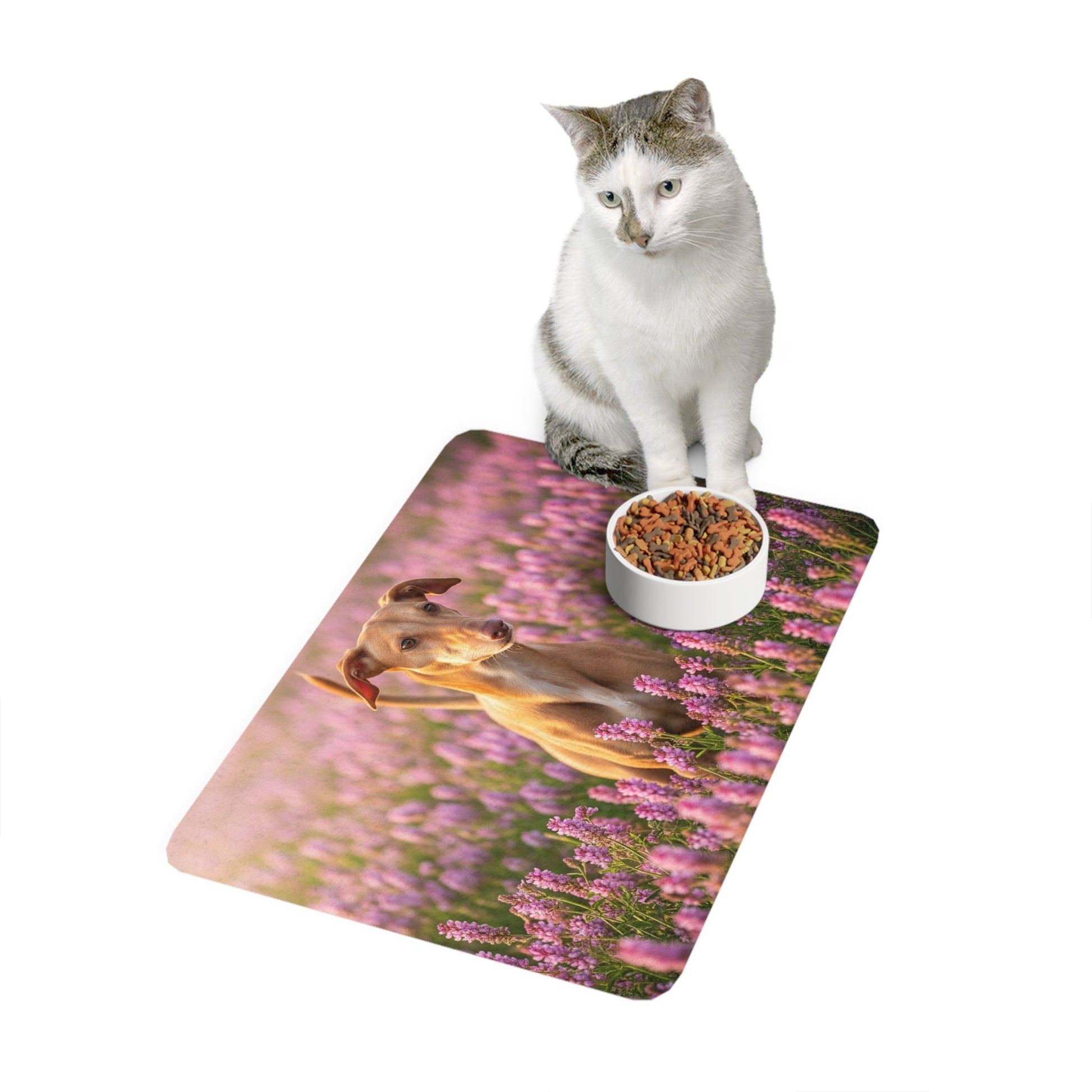 This Pet Food Mat 12x18 featuring a beautiful Cirneco dell’Etna design is perfect for pet owners looking to add a touch of style to their pet's feeding area. The strong polyester front and neoprene rubber backing ensure durability and slip resistance. Vibrant colors make this mat stand out and add personality to your space. Perfect for pet owners celebrating their love for their furry friends.