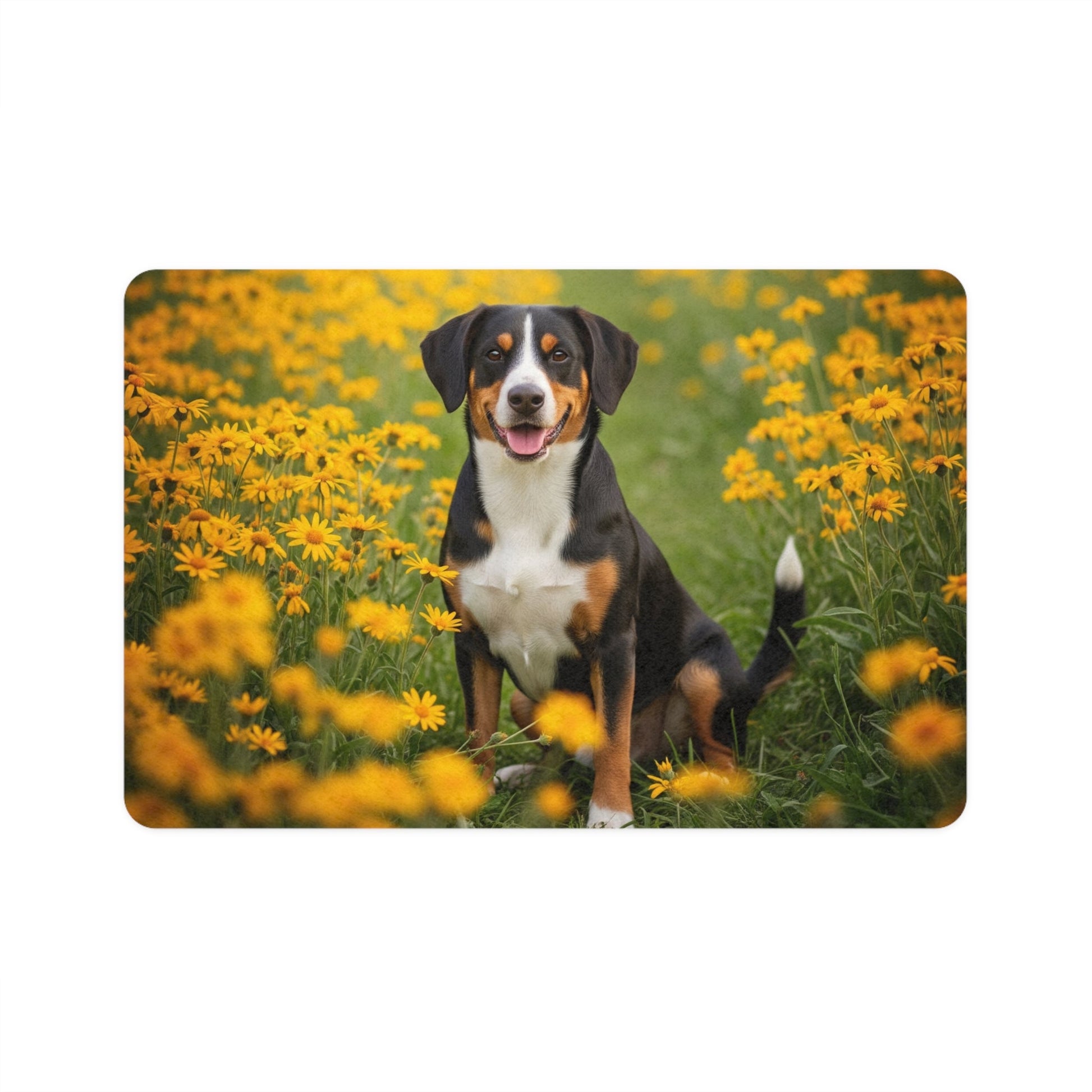 This Pet Food Mat 12x18 featuring a beautiful Entlebucher Mountain Dog design is perfect for pet owners looking to add a touch of style to their pet's feeding area. The strong polyester front and neoprene rubber backing ensure durability and slip resistance. Vibrant colors make this mat stand out and add personality to your space. Perfect for pet owners celebrating their love for their furry friends.