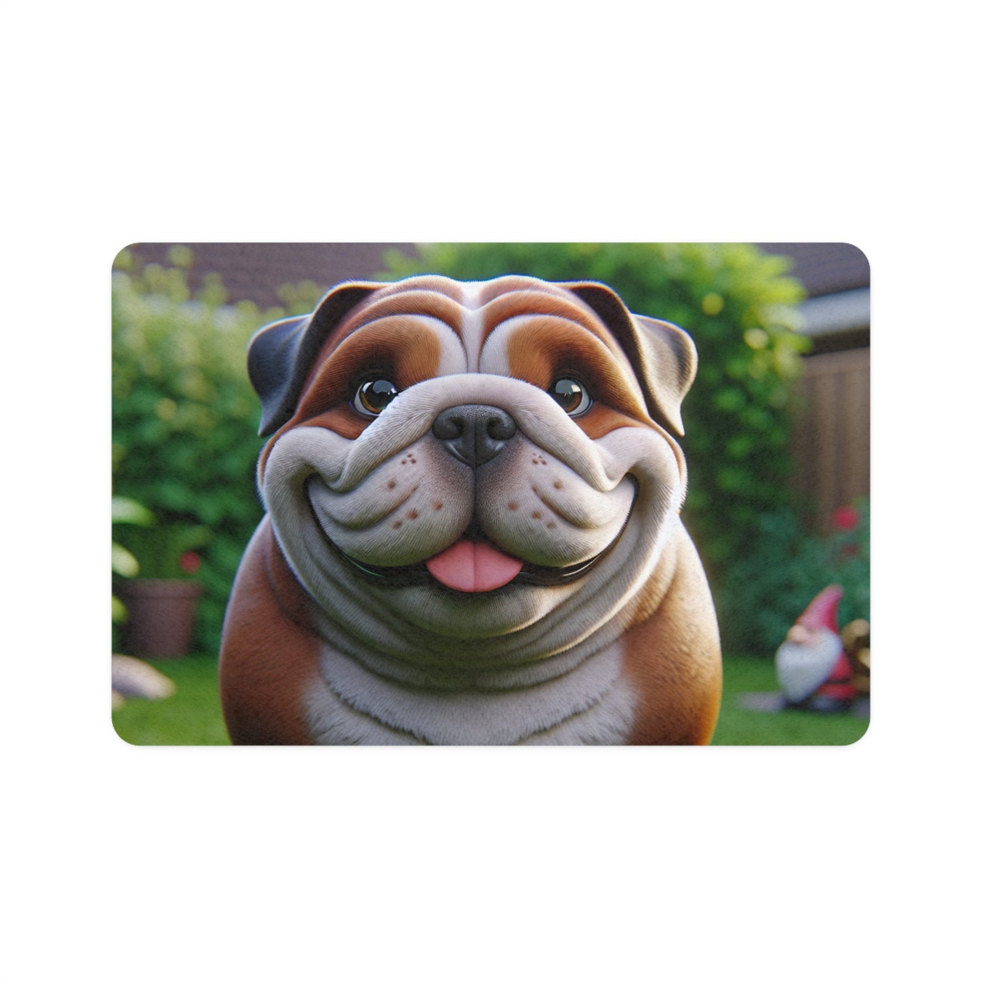 This Pet Food Mat 12x18 featuring a beautiful Olde English Bulldogge design is perfect for pet owners looking to add a touch of style to their pet's feeding area. The strong polyester front and neoprene rubber backing ensure durability and slip resistance. Vibrant colors make this mat stand out and add personality to your space. Perfect for pet owners celebrating their love for their furry friends.