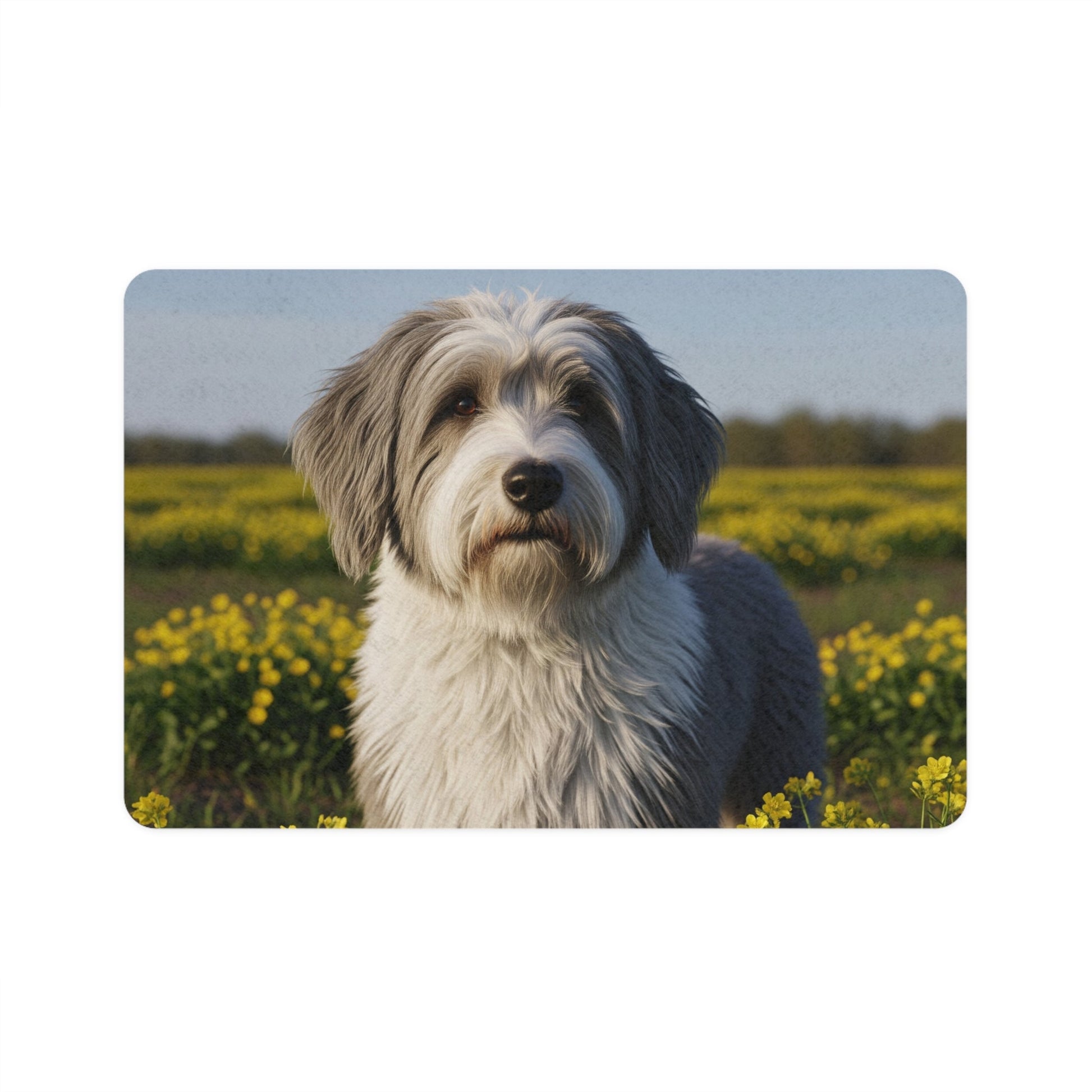 This Pet Food Mat 12x18 featuring a beautiful Polish Lowland Sheepdog design is perfect for pet owners looking to add a touch of style to their pet's feeding area. The strong polyester front and neoprene rubber backing ensure durability and slip resistance. Vibrant colors make this mat stand out and add personality to your space. Perfect for pet owners celebrating their love for their furry friends.