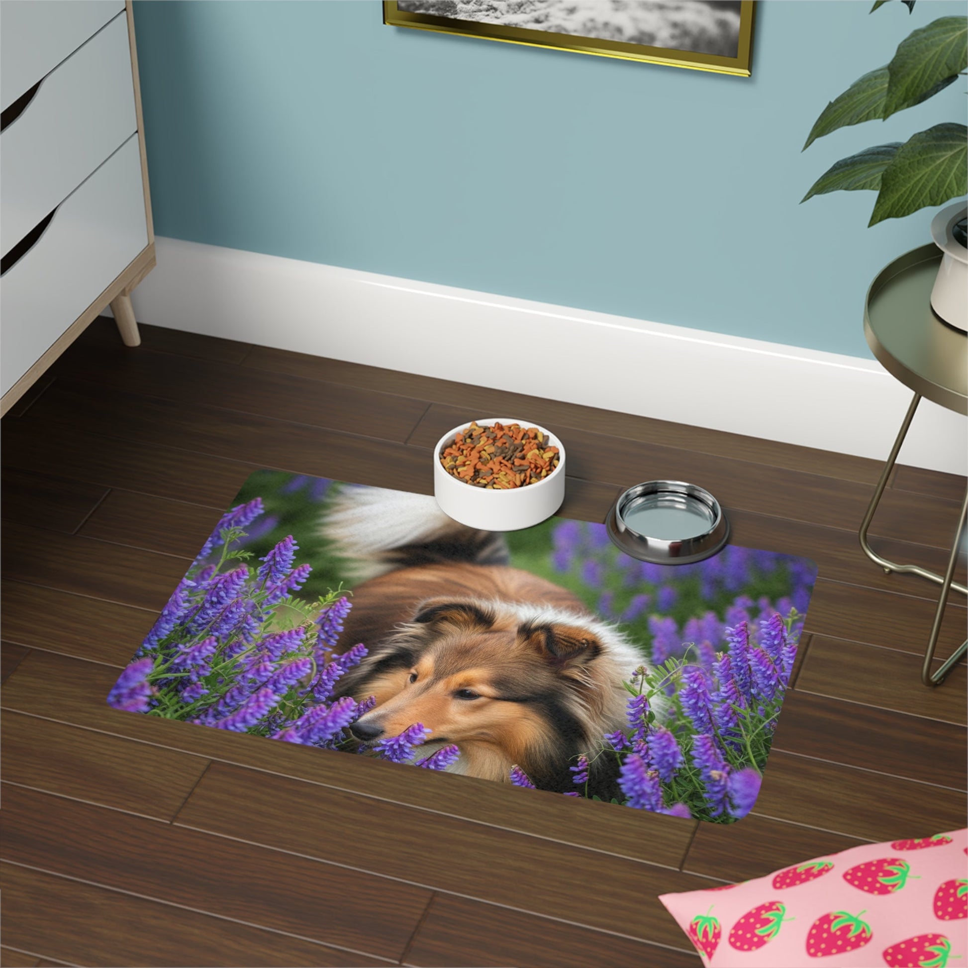 This Pet Food Mat 12x18 featuring a beautiful Shetland Sheepdog design is perfect for pet owners looking to add a touch of style to their pet's feeding area. The strong polyester front and neoprene rubber backing ensure durability and slip resistance. Vibrant colors make this mat stand out and add personality to your space. Perfect for pet owners celebrating their love for their furry friends.