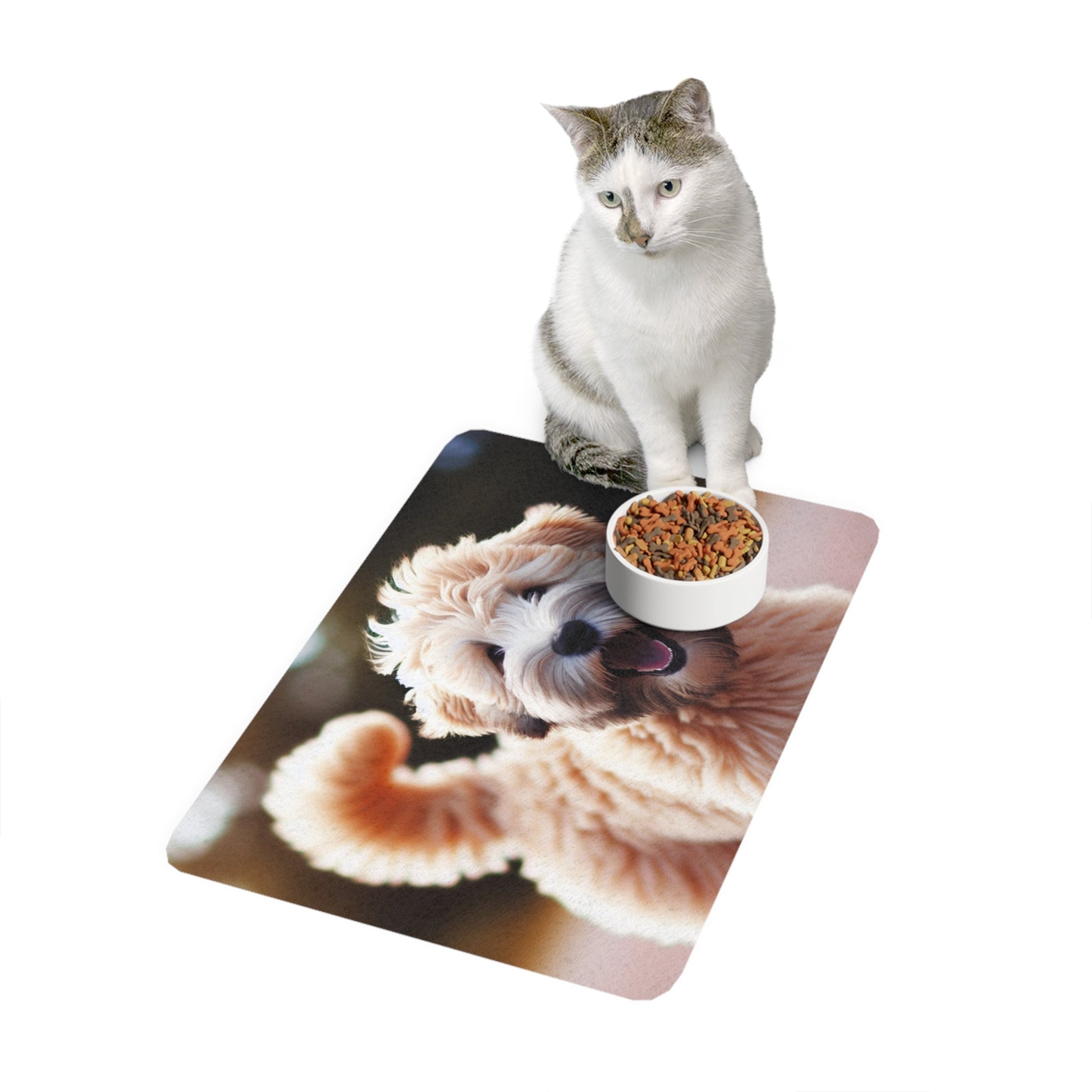 This Pet Food Mat 12x18 featuring a beautiful Soft Coated Wheaten Terrier design is perfect for pet owners looking to add a touch of style to their pet's feeding area. The strong polyester front and neoprene rubber backing ensure durability and slip resistance. Vibrant colors make this mat stand out and add personality to your space. Perfect for pet owners celebrating their love for their furry friends.