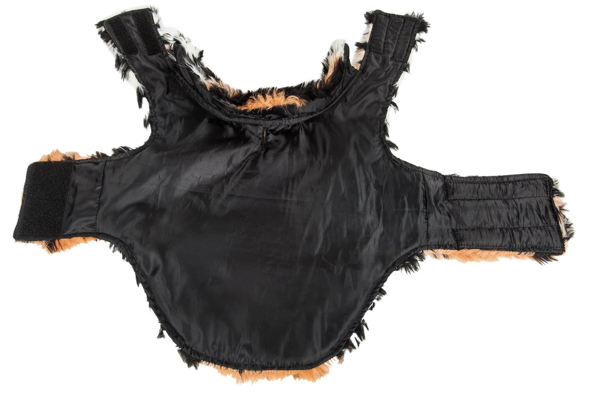 The Pet Life ® Luxe 'Tigerbone' Tiger-Patterned Mink Fashion Fur Dog Jacket features an opulent Golden Brown, Beige, and Black patterned luxurious tiger-print that stretches throughout the body with a beautifully accented faux-fur collar that is smooth and soft to the touch. Features Tough-Grade across-the-body Hook-and-Loop Belly Enclosures for convenient on and off access and a leash slit below the Neck line. This fashion Dog Jacket is part of our Pet Life ® Luxury collection. Available in Multiple Sizes.