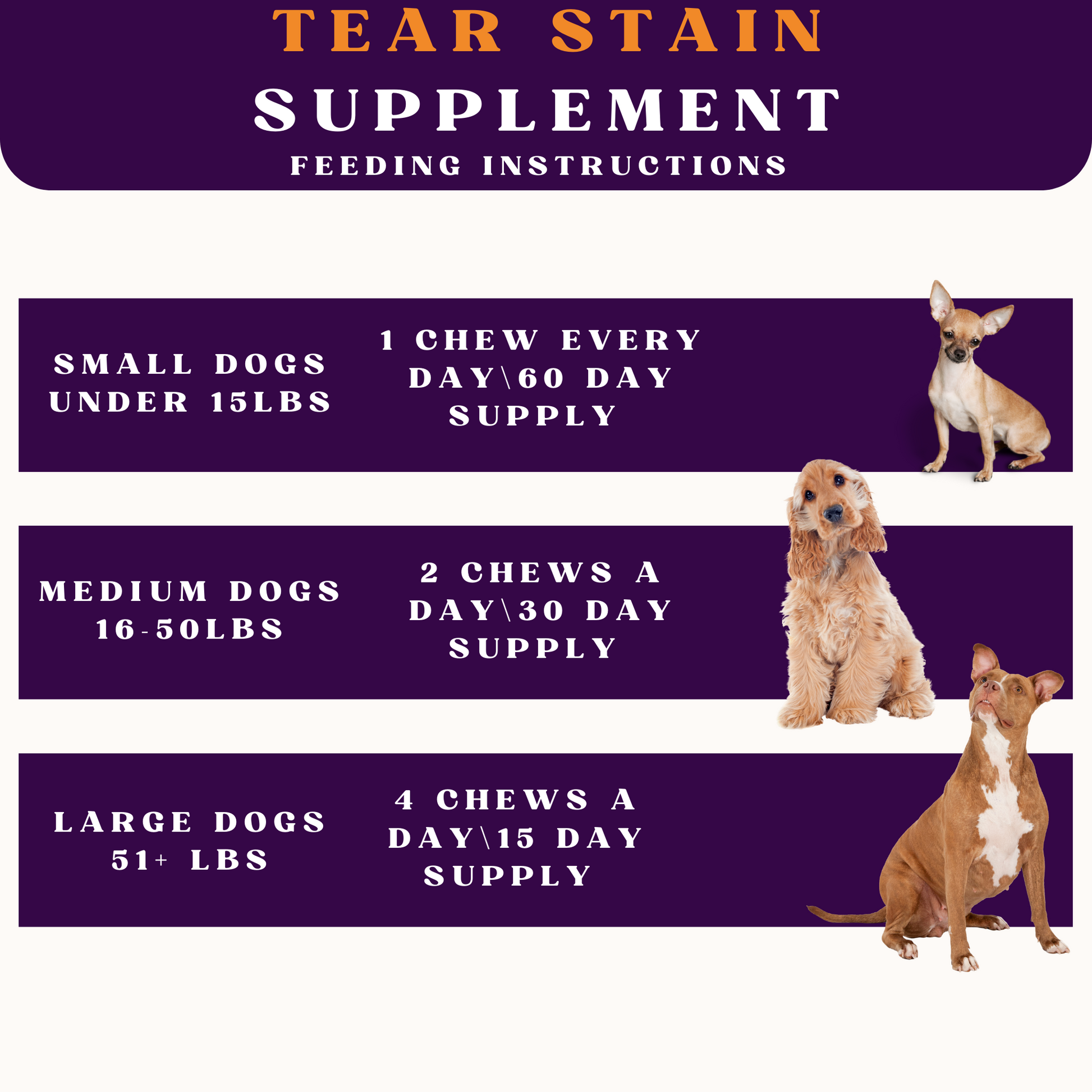 PiccardNaturePets Tear Stain Supplement with Lutein for Dogs 60ct Enhance your dog's vision and support their immune system with Piccard Nature Pets Tear Stain Supplement, specially formulated for dogs 12 weeks of age and older. This supplement contains lutein, Omega-3, and moisturizing ingredients to prevent tear stains from the inside out. Made in the USA and delivered in a tasty chew treat, your dog will love the added health benefits this supplement provides for a more active lifestyle.