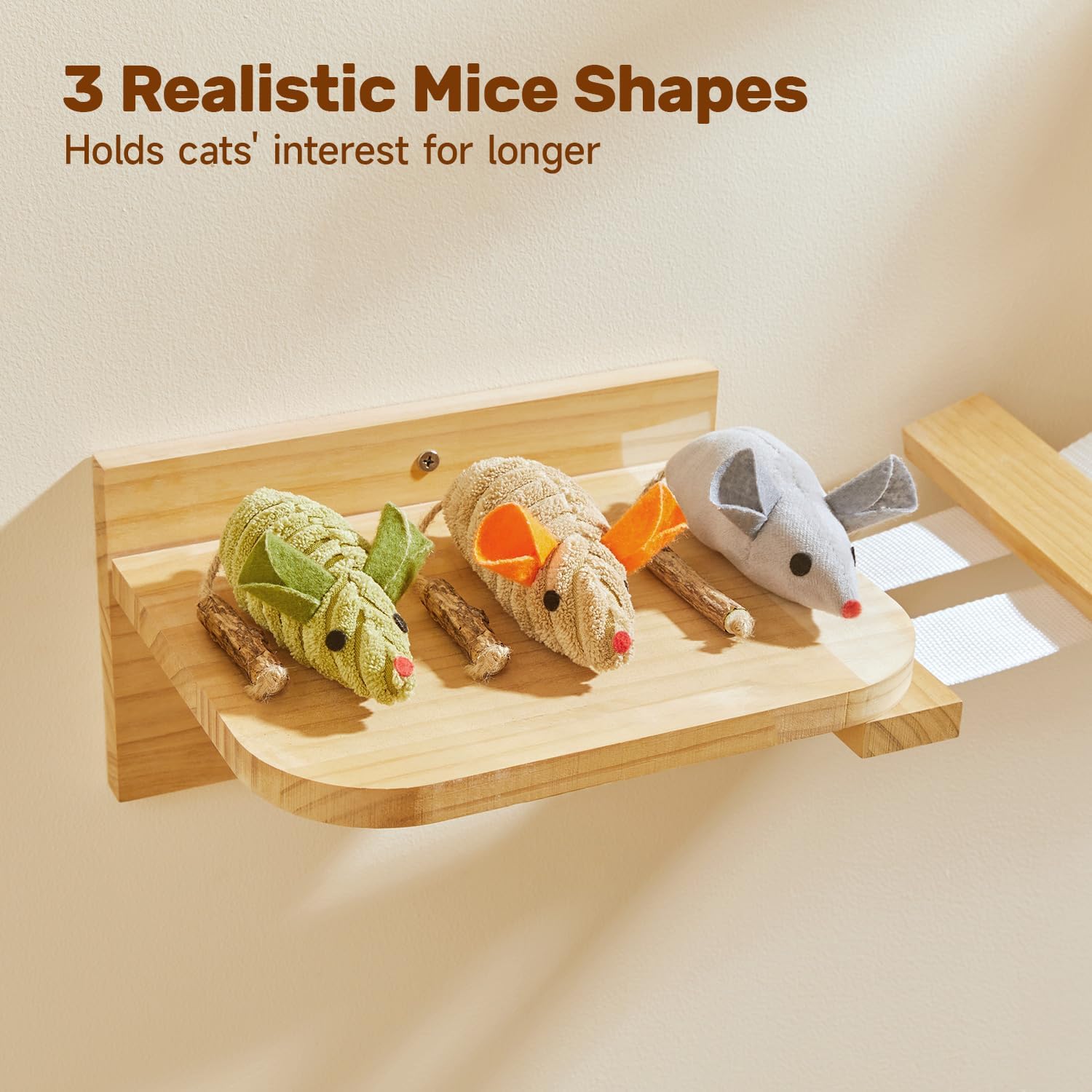 Squeak Mice – Make play fantastic with the 3 plush squeaking mice toys. The cat toys make lifelike mouse chirping sounds once playtime begins, beckoning every bat, bite, chew, and chase! The mice kitten toys keep quiet when left alone to save battery power