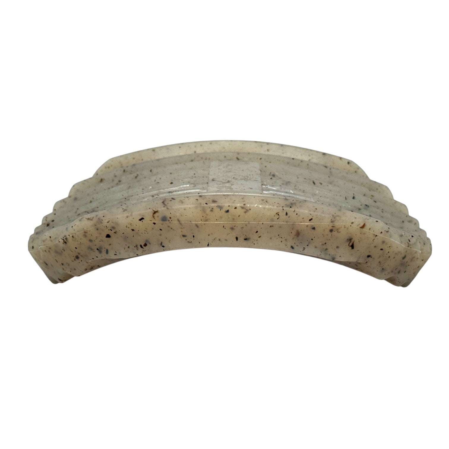 Use the Potato Chip as a traditional chew toy for supervised chewing sessions, or spread peanut butter, yogurt, or other dog-safe spreads along the ridged surface for enrichment licking. The curved shape and ridges create perfect channels for holding treats while the durable nylon withstands chewing. For extended enrichment, freeze the toy with spreads in the ridges. Always supervise your dog during use and remove the toy if it becomes damaged.