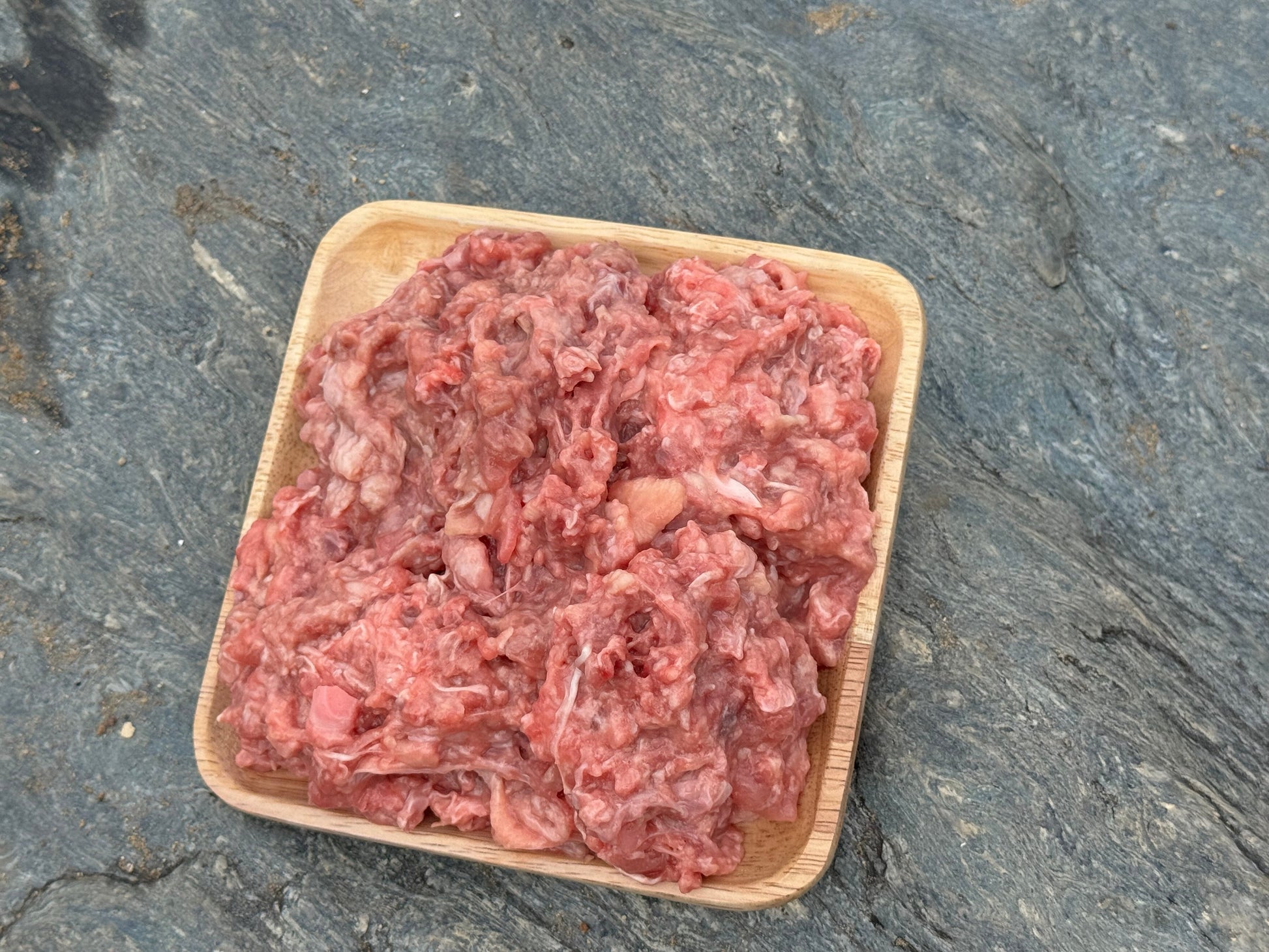 We use whole chicken carcass, featuring approximately 70-72% meat, 20-22% bone, and 6-8% organs (Liver 5%-Heart 1-2%), ground by hand and flash-frozen at -30°F to lock in freshness and nutrients. Each batch goes through a rigorous sanitation process - the same technology used in USDA human-grade facilities - to reduce bacteria like salmonella, E. coli, listeria, and campylobacter.