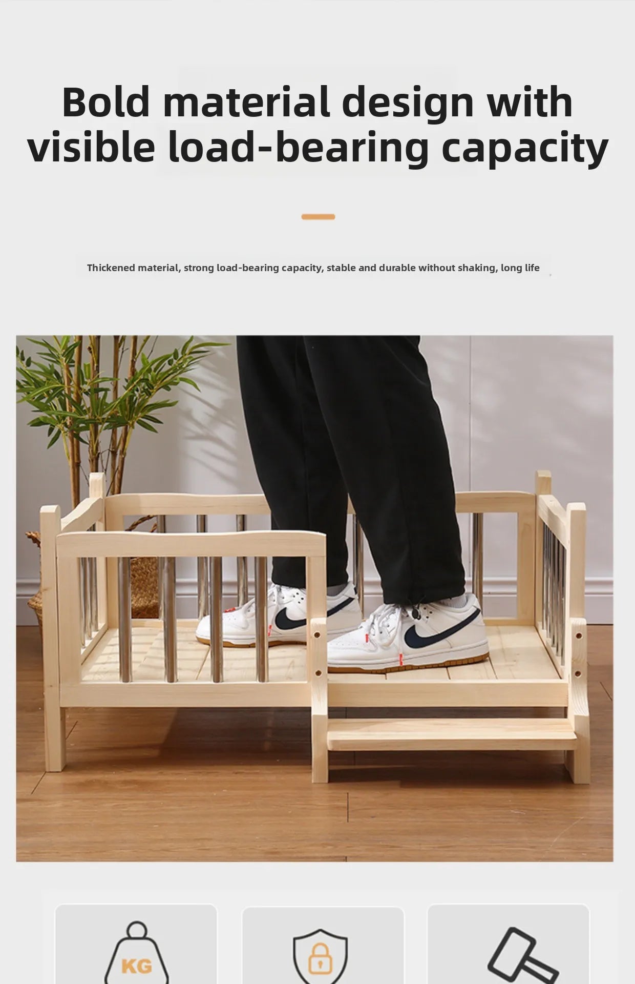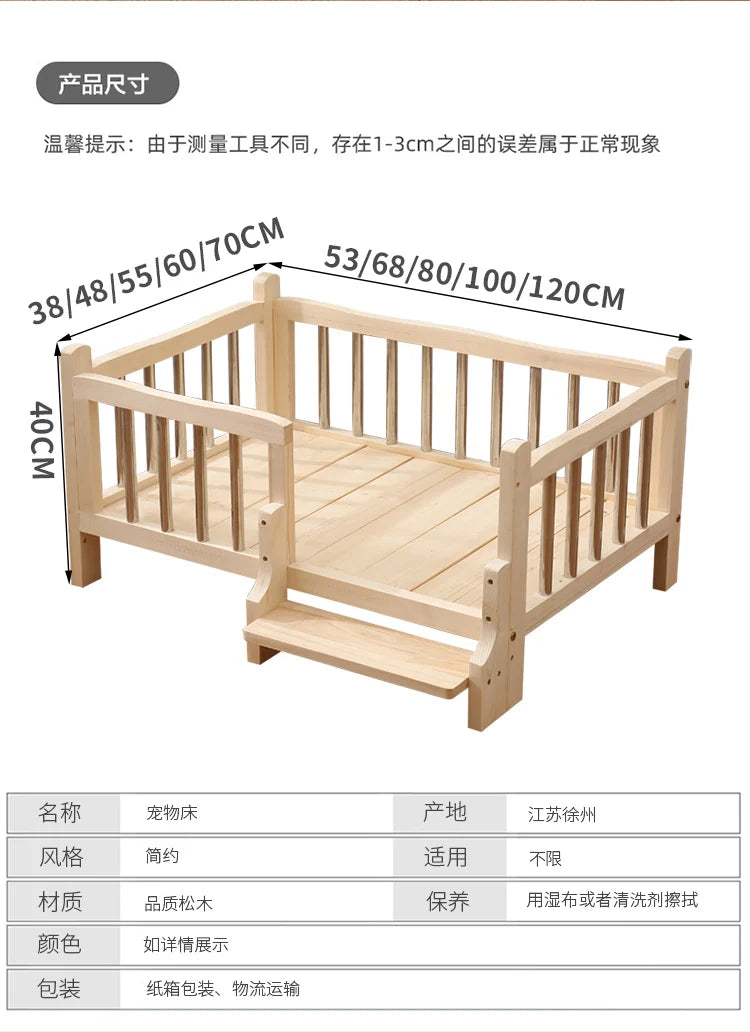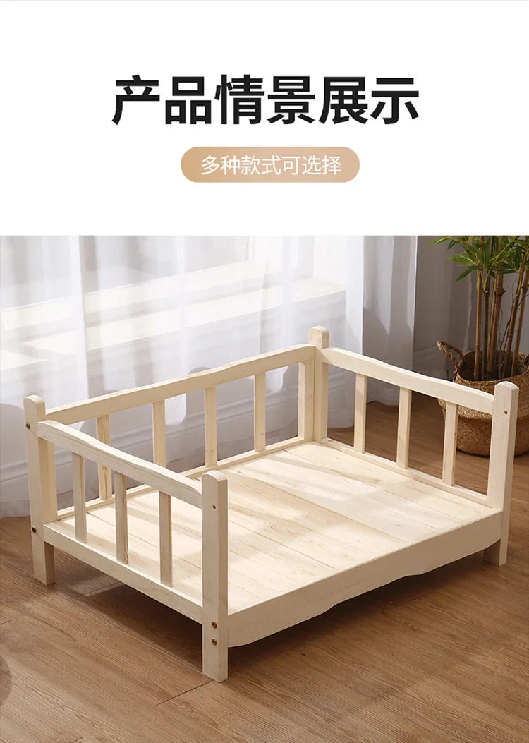 Premium Solid Wood Pet Bed - All-Season Removable Cushion for Dogs & Cats