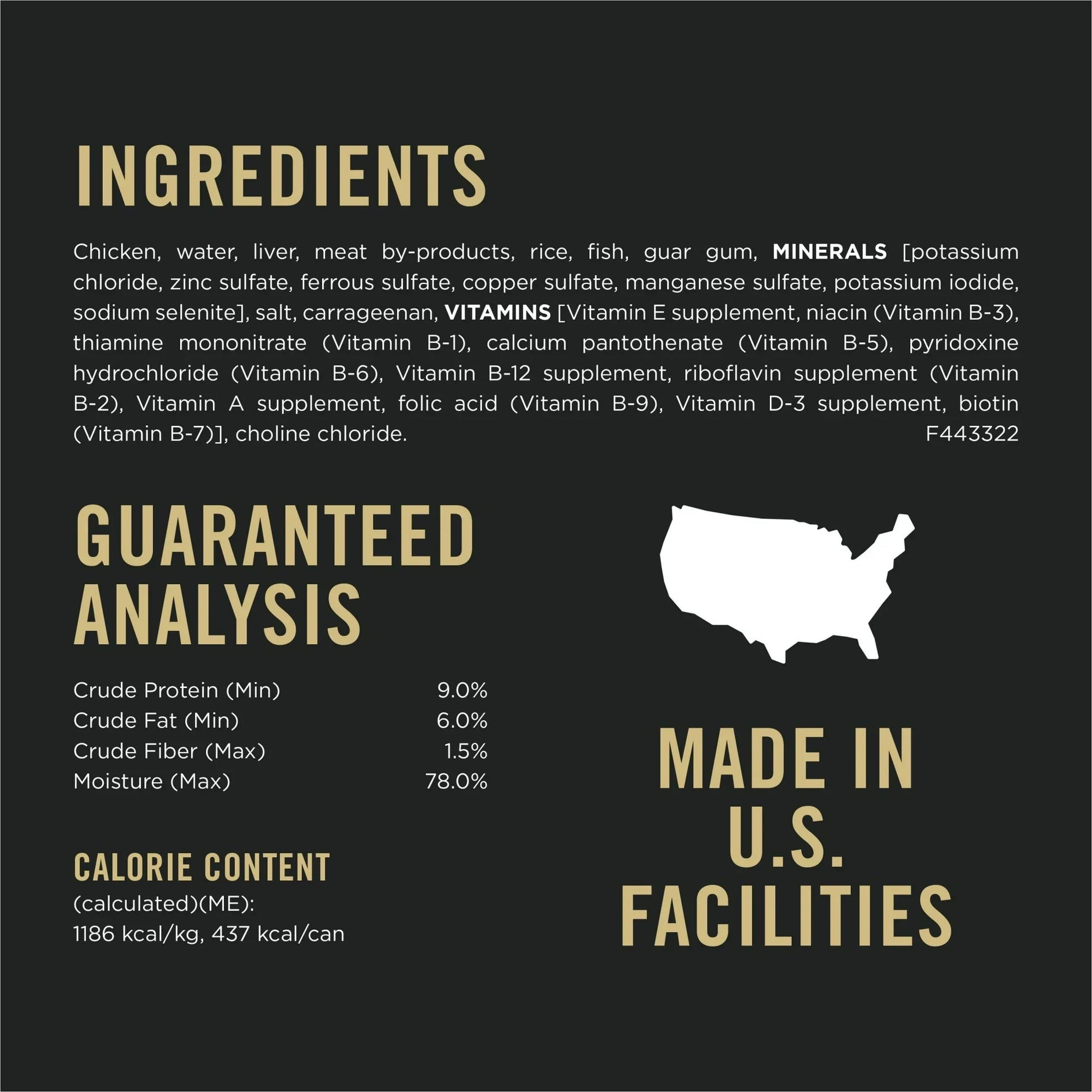 Classic wet formula made with chicken as the first ingredient. High in protein to maintain lean muscle. Proudly manufactured at Purina owned US facilities with no artificial colors, flavors or preservatives.
