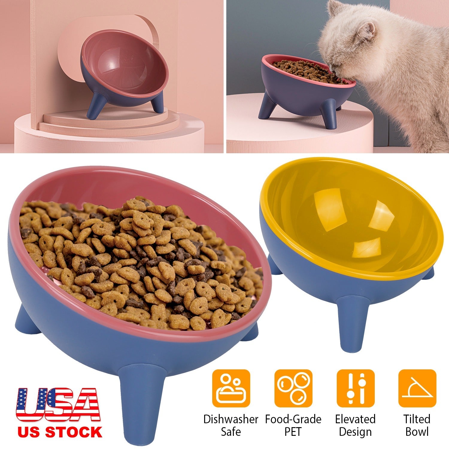 Raised Tilted Elevated Cat Food Bowl Pet Backflow Prevention Water Dish Feeding Bowl for Cats Small Dogs