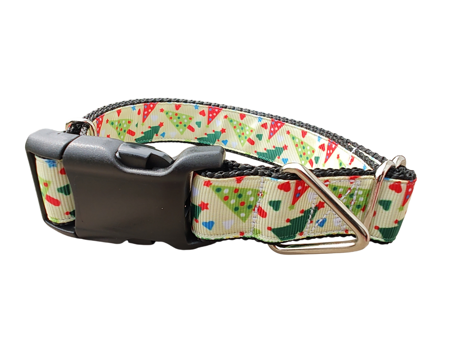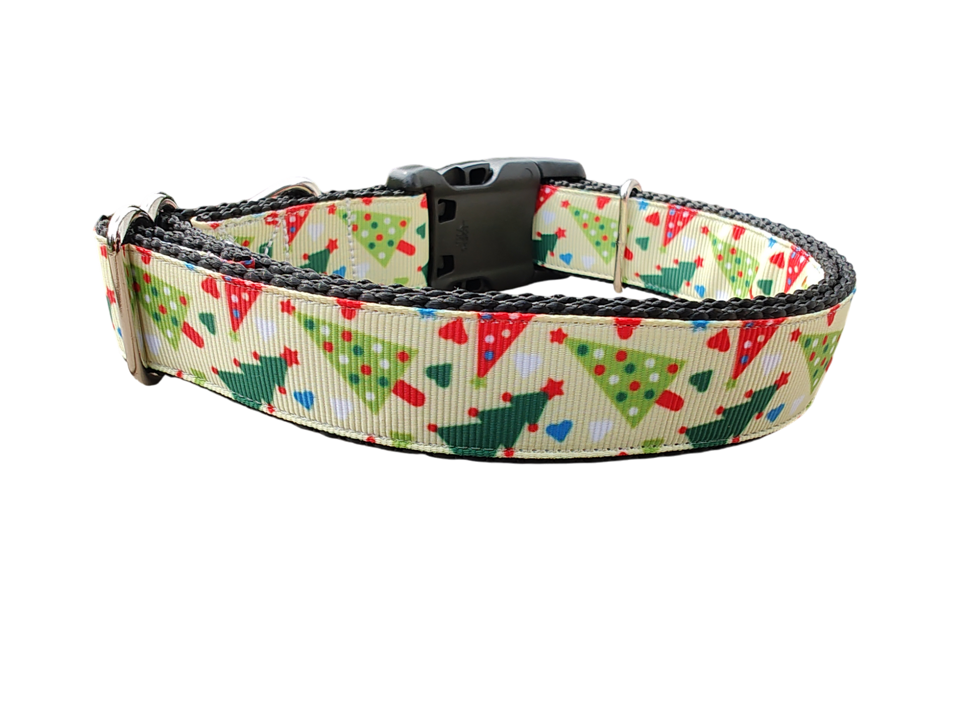Red and Green Christmas Trees dog collar on nylon webbing