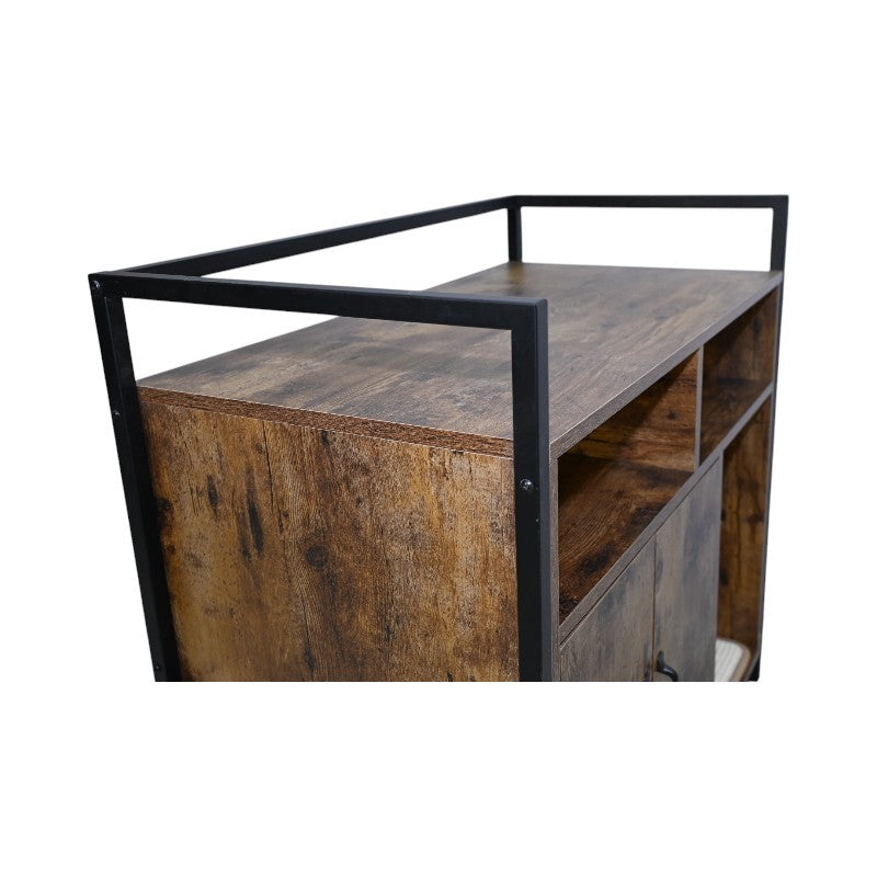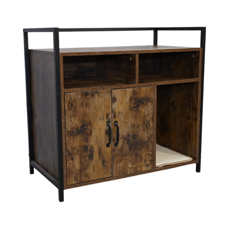 Rustic Brown Wooden Cat Litter Box Enclosure, Spacious Hidden Cat