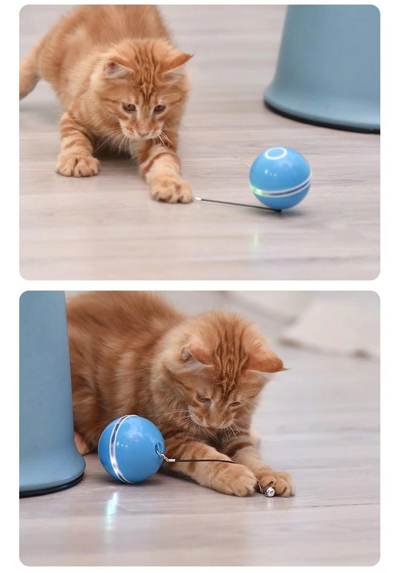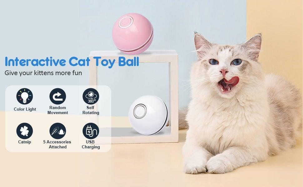 - 360 DEGREE SELF ROTATION-The primary purpose of the self rotating ball is to have your pet chase the ball around and have fun. With just a single press of a button, the ball will start to do a 360 degrees self rotation and attract your pet's attention. The ball will continuously move around your house while producing a red light simultaneously