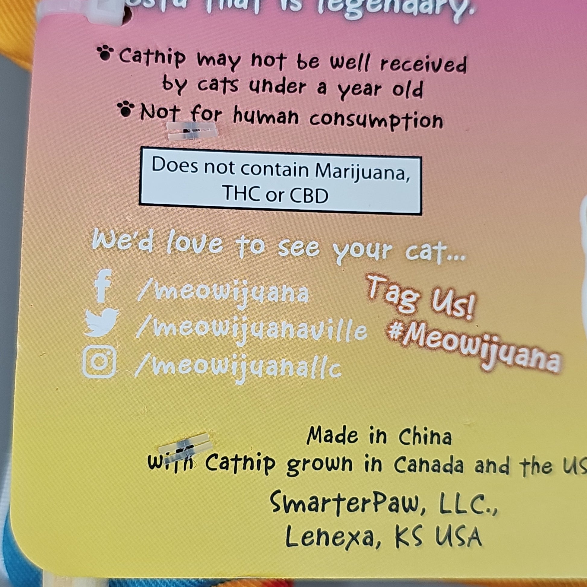 - Never worry about toys losing their scent again – this toy comes with a tube full of Meowijuana goodness so you can always have fresh 'nip on hand and keep the paw-ty rollin'.