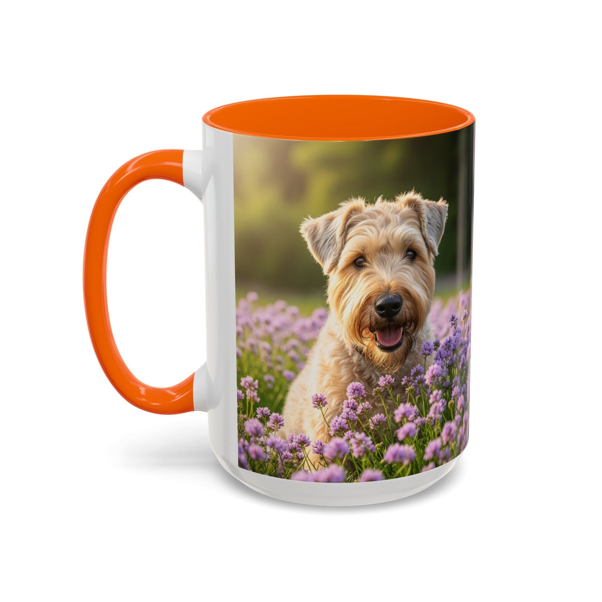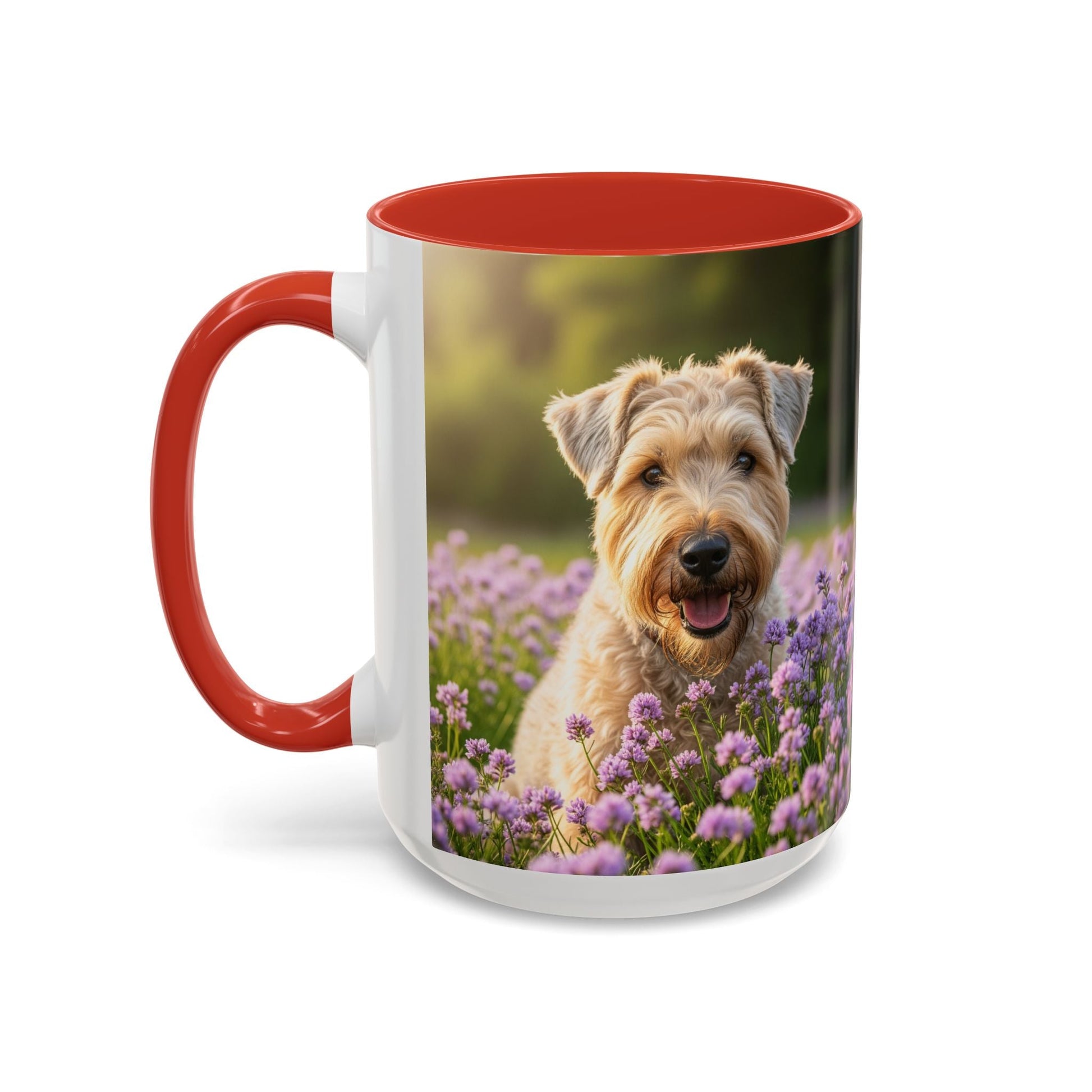 Soft Coated Wheaten Terrier Accent Coffee Mug - Perfect Gift for Dog Lovers. This vibrant mug is microwave and dishwasher safe, with a glossy finish and eye-catching color contrast. Ideal for dog lovers, this mug is perfect for enjoying a cozy cup of coffee or tea during the holidays.