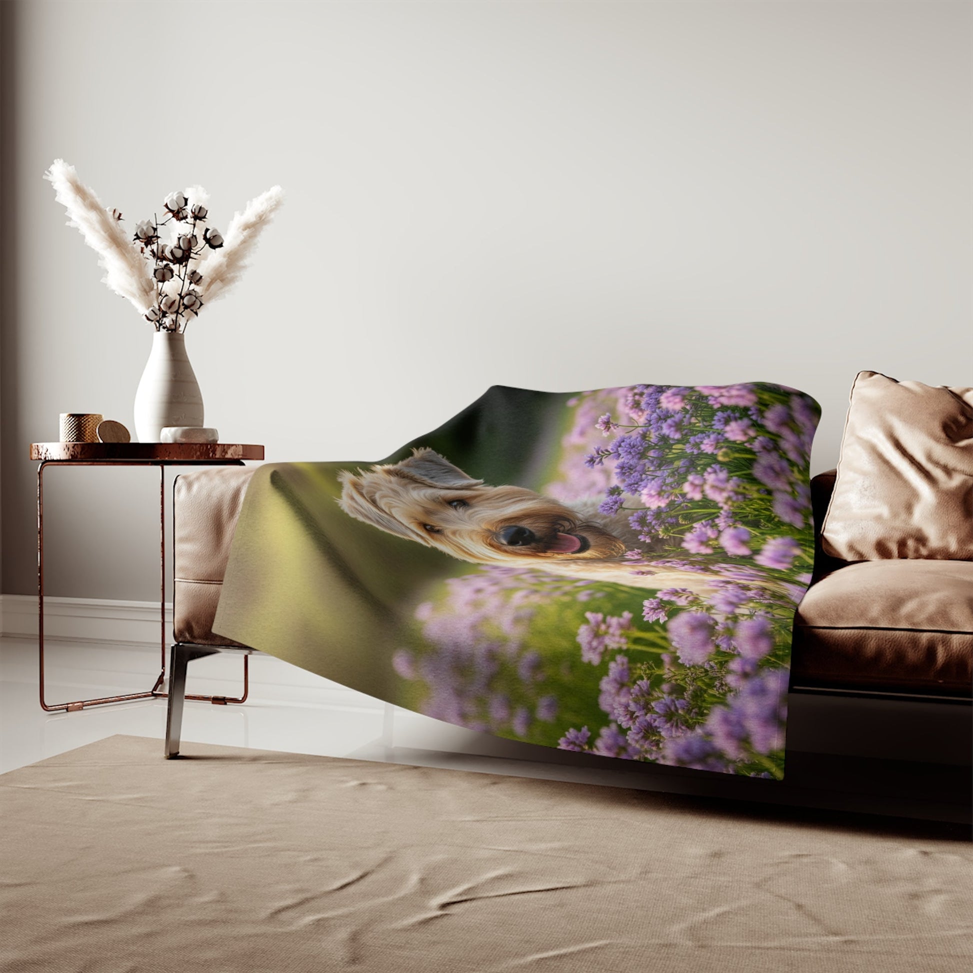 The Soft Coated Wheaten Terrier Sweatshirt Blanket is perfect for cozying up on chilly nights or adding a pop of color to your living space. Its vibrant design gives off a fun and laid-back vibe, making it a great addition to any dog lover's collection. This blanket is relevant for dog lovers, beach enthusiasts, and anyone looking to add a touch of whimsy to their decor. Perfect for gifting during summer, birthdays, or as a housewarming present.