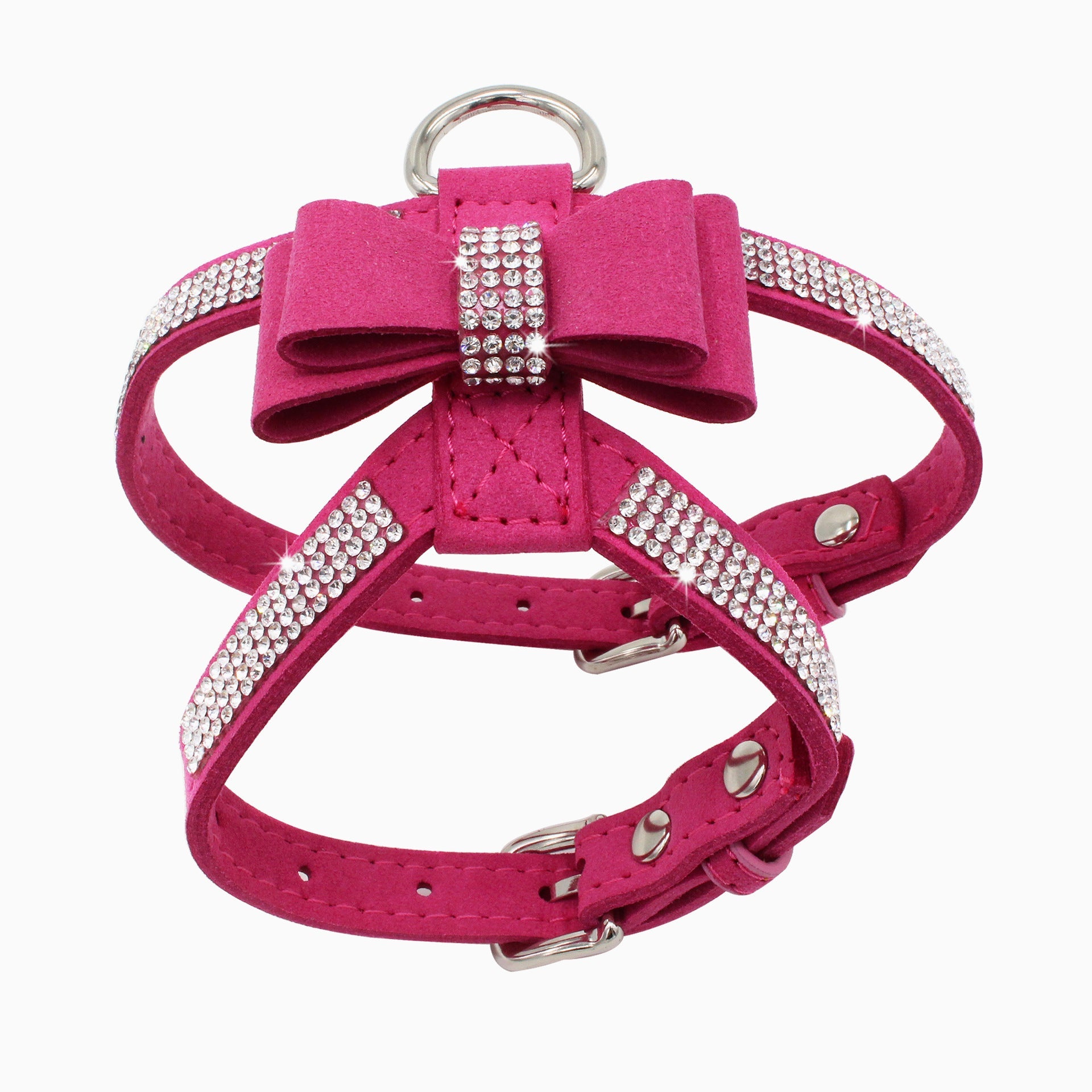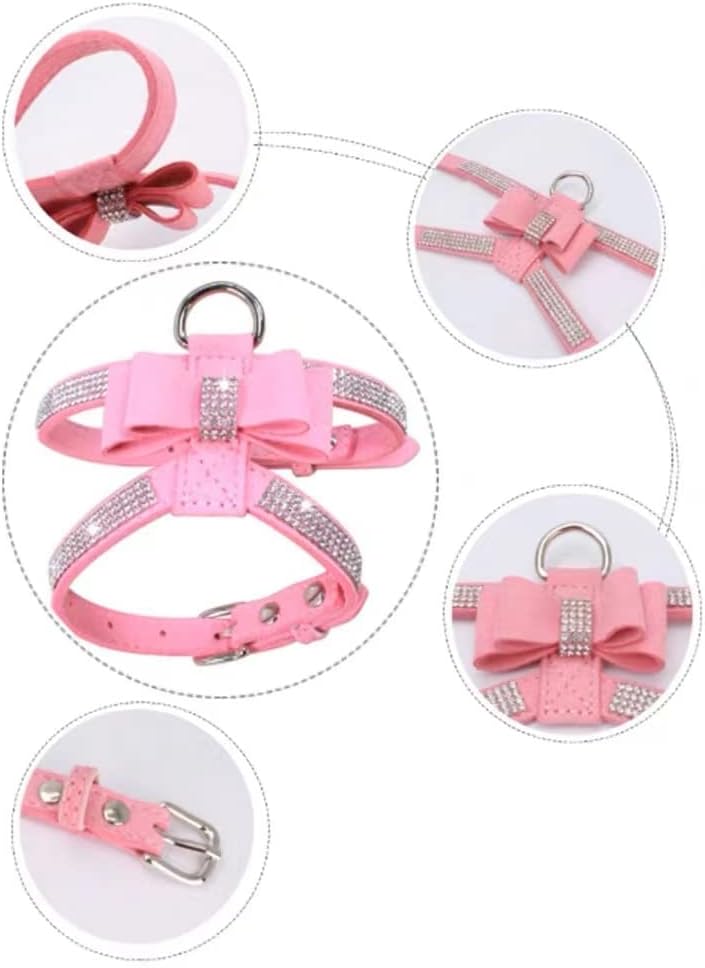 Dress your pup like royalty with this ultra-soft suede dog harness and leash set. Designed with shimmering rhinestones and a charming bowknot, this lightweight harness is as gentle on your pet’s skin as it is dazzling to the eye. It’s the perfect blend of comfort, beauty, and practicality for small dogs with big style.