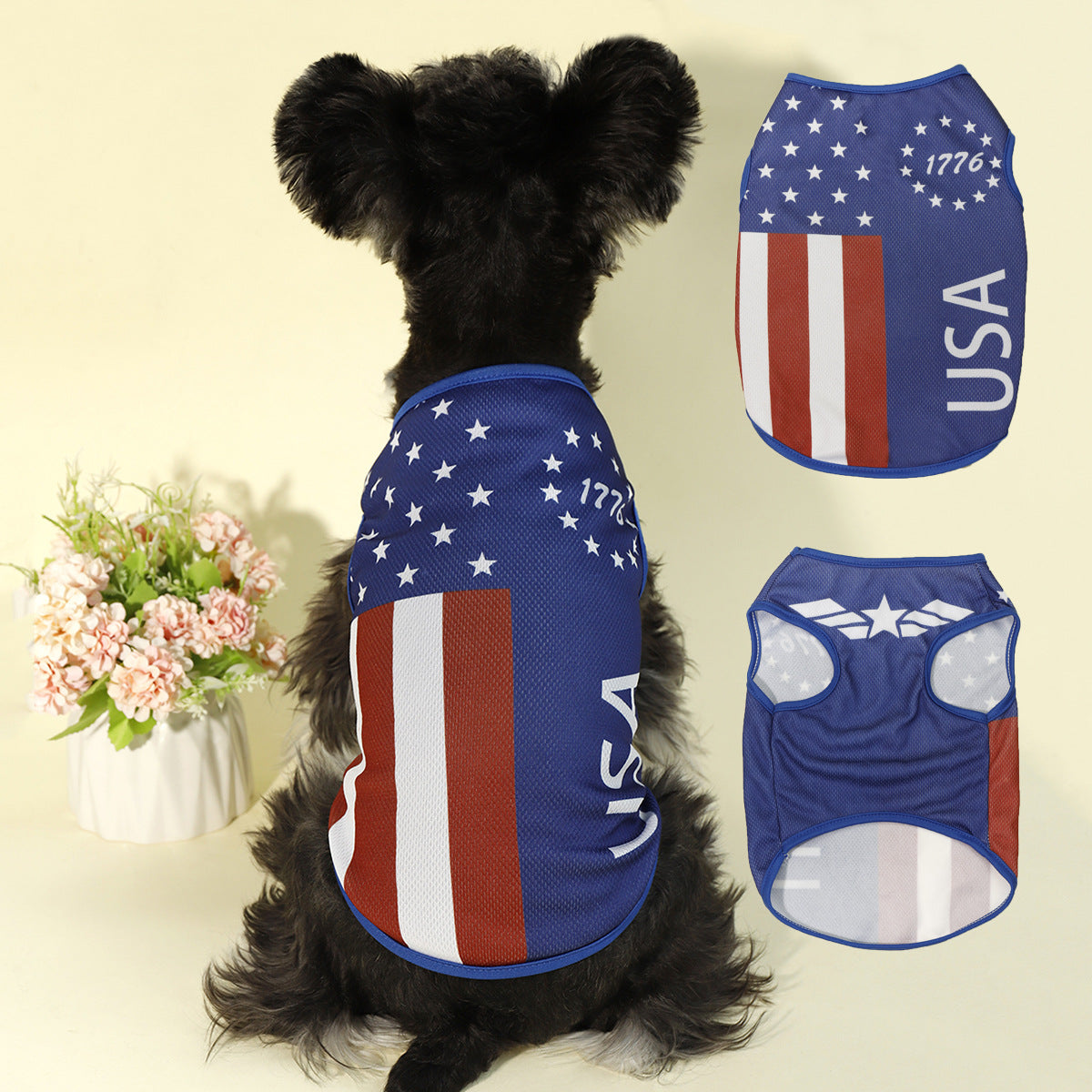 Celebrate freedom and fun with these patriotic dog tanks! Perfect for summer BBQs, 4th of July parades, or just a walk in the park, each design features bold red, white, and blue prints that show off your pup's festive spirit. Designed with comfort and convenience in mind, these sleeveless tees are lightweight, breathable, and easy to slip on and off.