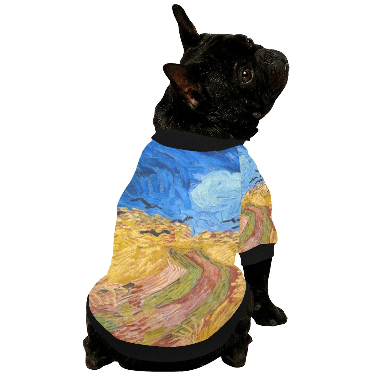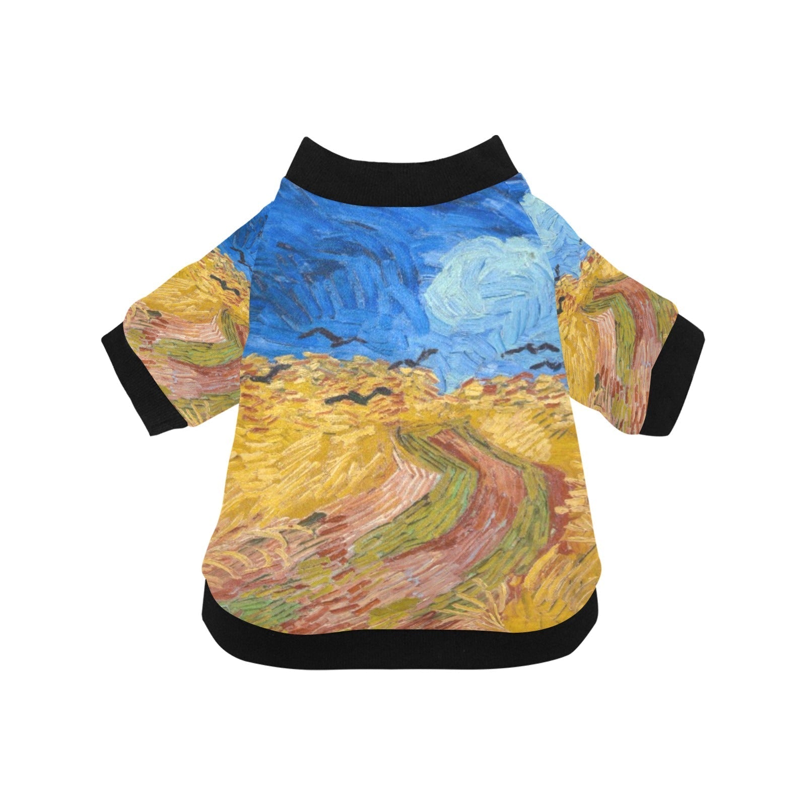 Give your dog a stylish makeover with this round neck button shirt showcasing one of Vincent van Gogh's most emotionally engaging works, Wheatfield with Crows. This 100% polyester shirt is expertly sewn for a snug fit and easy care. Perfect for playful pups who appreciate high-quality art and fashion!