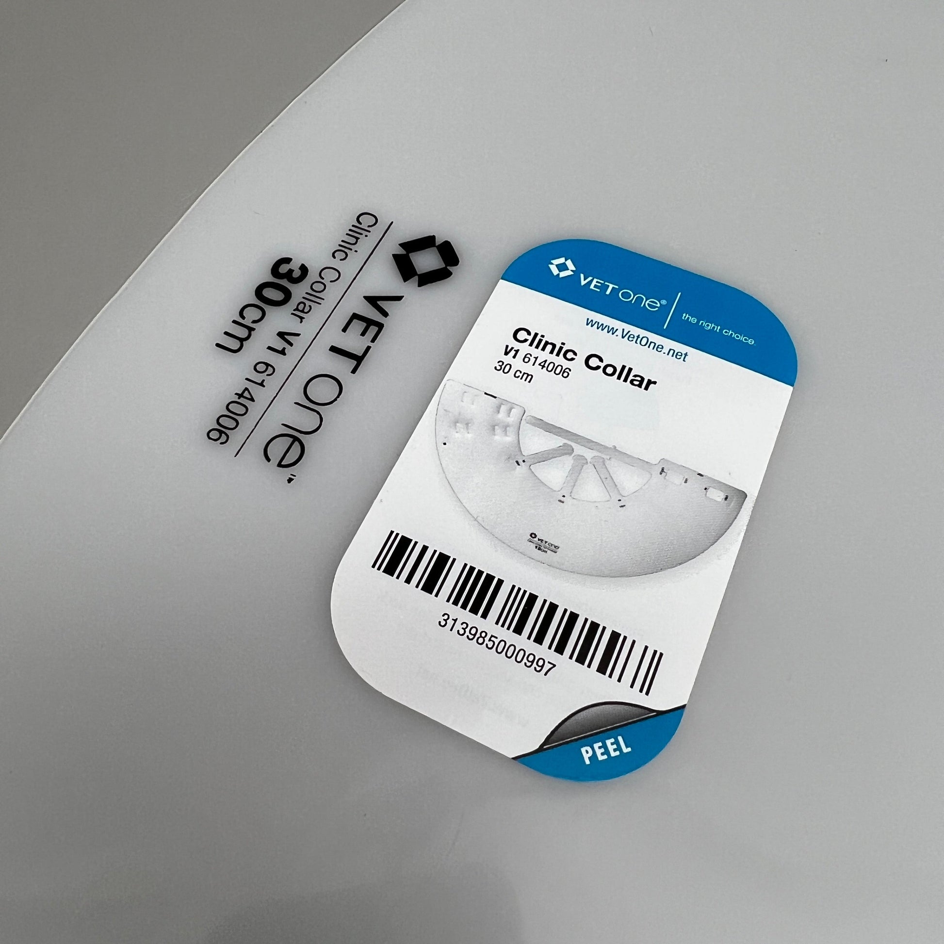 The VETONE Clinic Clear Collar Cone is a veterinarian-trusted solution for preventing pets from licking or biting at wounds or stitches. This 50-pack of clear, disposable cones features an adjustable neck closure for a comfortable fit on extra-large pets. The clear plastic material allows for easy monitoring of the healing process, while the affordable design makes it a cost-effective option for veterinary clinics and pet care providers. Please note this cone size is 30 cm, suitable for extra-large pets. For smaller sized cones, see our other listings.