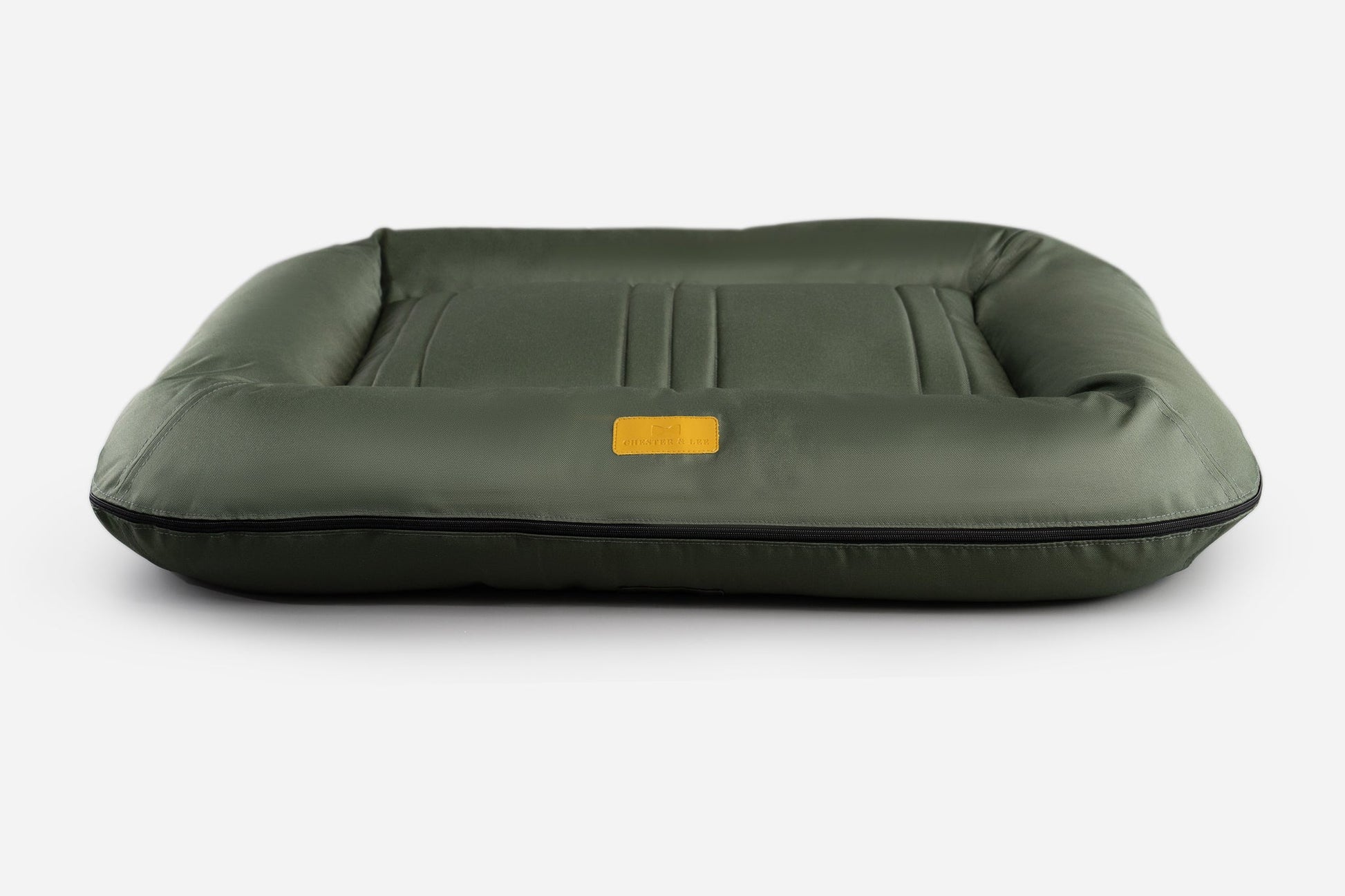 Waterproof Oxford Lounger Dog Bed features durable, water-resistant Oxford fabric and hypoallergenic holofiber fill for firm, outdoor-ready support and long-lasting comfort. Its spacious lounger shape is perfect for medium to extra-large breeds who love to stretch out. The removable, washable cover with hidden YKK zippers is made by a certified manufacturer (ISO 9001, OEKO-TEX®, GRS), ensuring premium quality and eco-friendly standards.